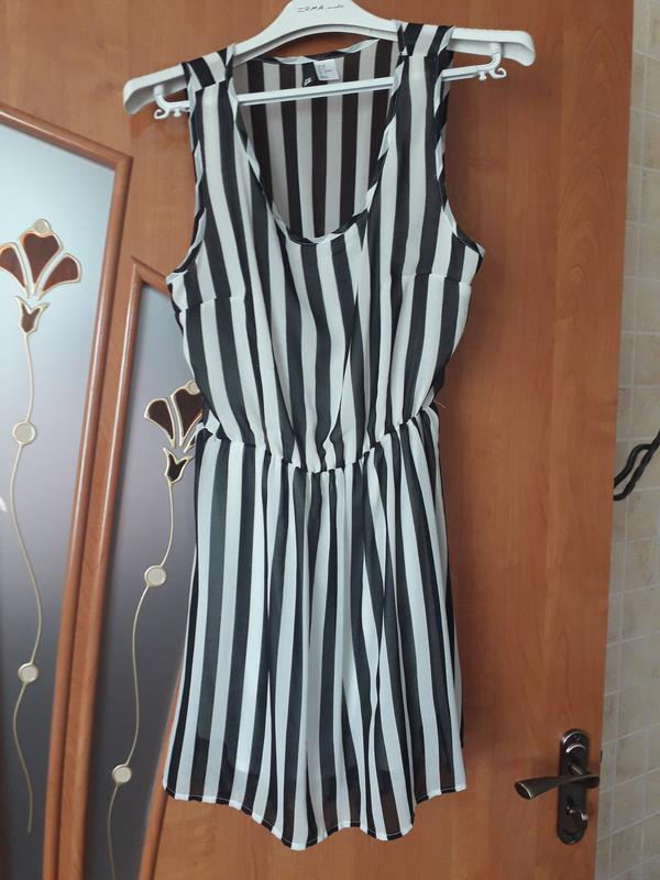 Легенька шифонова сукня у чорно-білу смужку,в області спідниці підкладка.