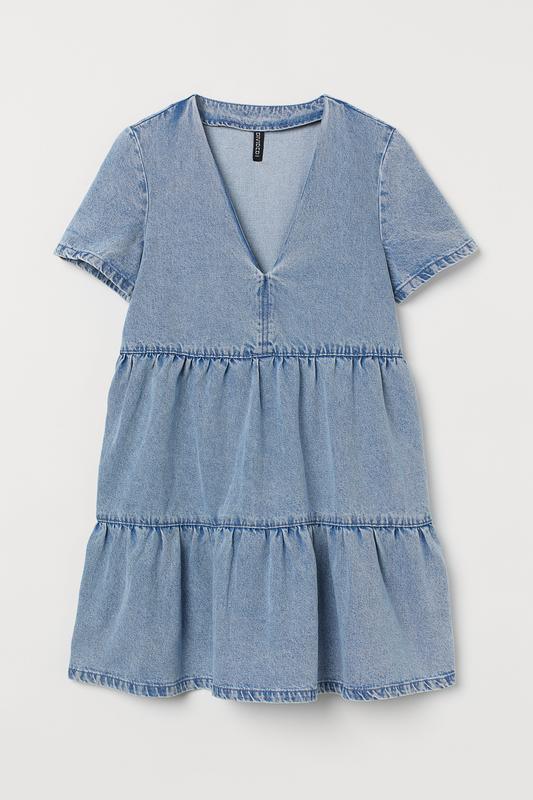 Новое короткое джинсовое платье H&M. Размер L, либо немного овер на М. В составе 100% хлопок. Длина на рост 160 отличная. Новое, сток аутлет, без бумажной бирки. Цена 599 грн ПОГ - 52,5 см ПОТ - 56 см Плечи - 38 см Длина - 83(38) см 0942670 ВЕЩЬ АБСОЛЮТНО НОВАЯ, К СЕКОНДУ ИЛИ Б/У ОТНОШЕНИЯ НЕ ИМЕЕТ