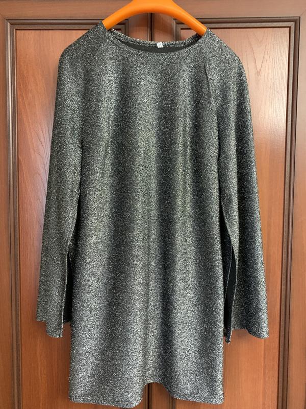 Женское платье, люрекс. Серебристого цвета. С поясом. Рукава- розлетайки. Новое.