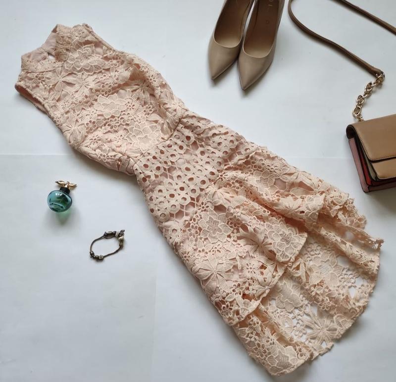 Мереживне плаття True Decadance. Розмір вказаний 8. ПОГ - 39, тягнеться до 39, ПОТ - 29-29,5, ПОБ - 42, тягнеться до 43,5. Довжина спереду 79, ззаду 93. Довжина підкладки 73. 100% поліестер