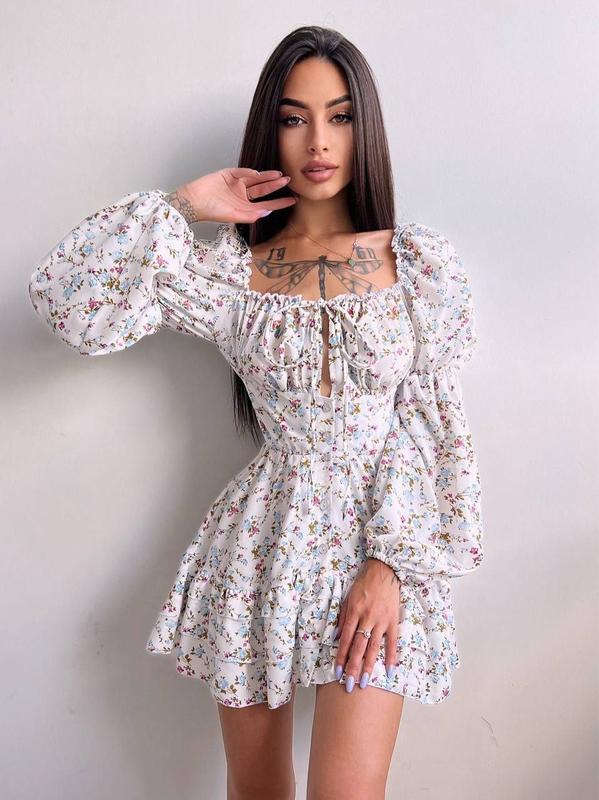 👆Квіткова сукня на ґудзиках з рукавами воланами та шнуровкою ззаду. Тканина софт Розміри : S, М Країна виробник Україна 🇺🇦