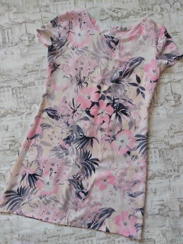 Сукня жіноча розмір 44, бежевого кольору з рожевими квітами в гарному стані