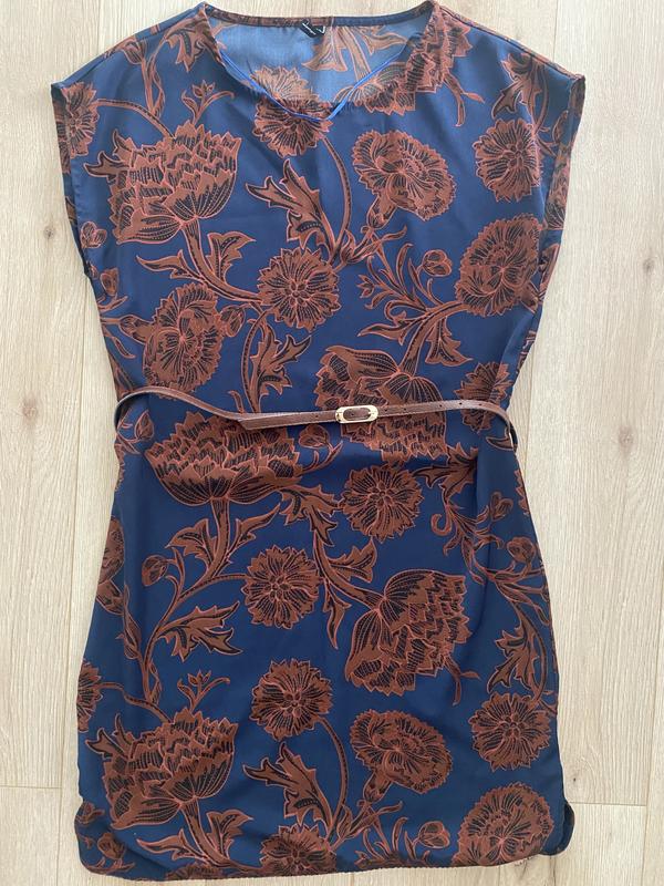Довжина 92 см, талія 47 см, бедра 50 см. Можна носити з поясом і без, крій прямий, плечі подовжені.