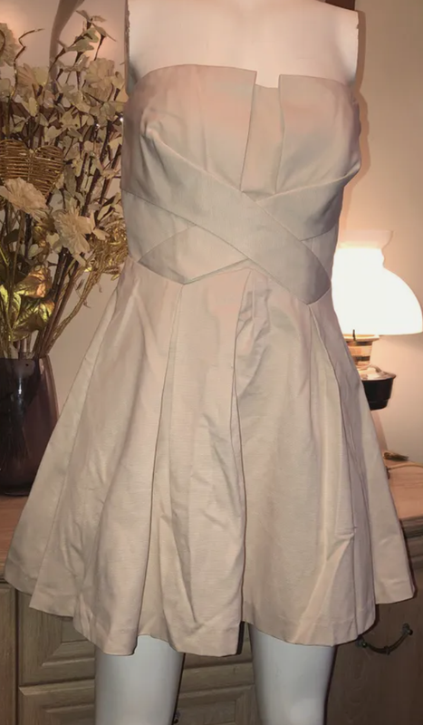 Сукня - міні молочного кольору. На спідниці є підкладка.