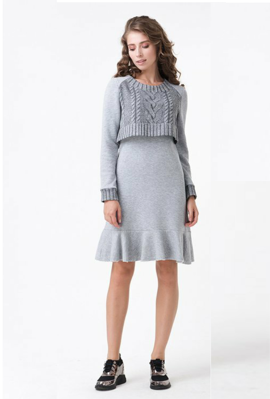 Жіночна сукня з довгими рукавами в романтичному стилі з ефектом «2 в 1». Поєднання однотонного забарвлення, але різних фактур тканини створює стилізацію комплекту. Крій чудово обігрує фігуру, а імітація у язки в області грудей і манжетах робить це сукню особливою. Матеріал приємний до тіла і легкий у догляді. Підійде не тільки для вечірки, а й на кожен день.