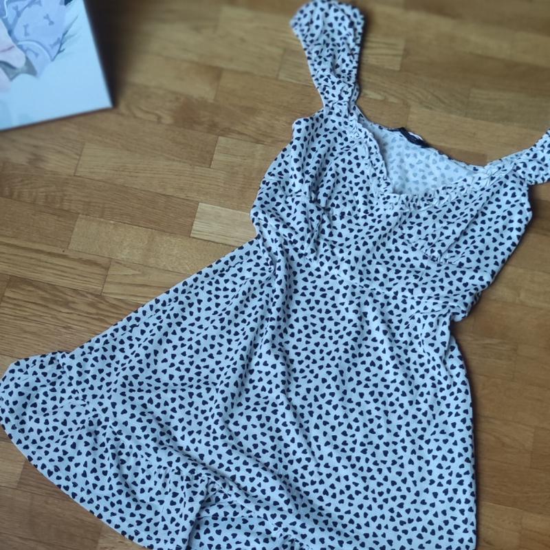 НОВЕ Біле платтячко з принтом сердечка від Bershka, на широких бретелях. Розмір S, ПОГ 39. Жодного разу не одягнуте.