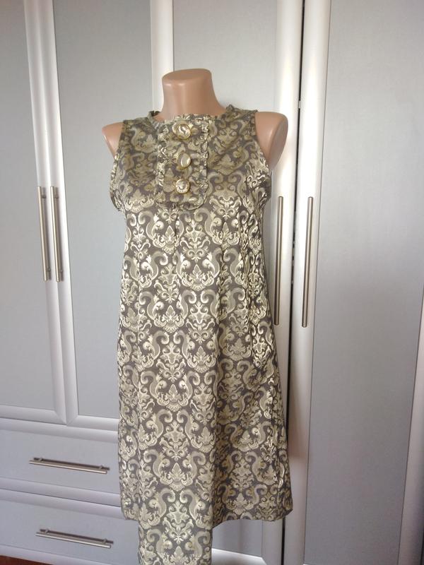 Нарядное платье жаккардового переплетения ткани, красиый декор на груди, А-образный силуэт, тянется. ПОГ-44, ДИ-85.