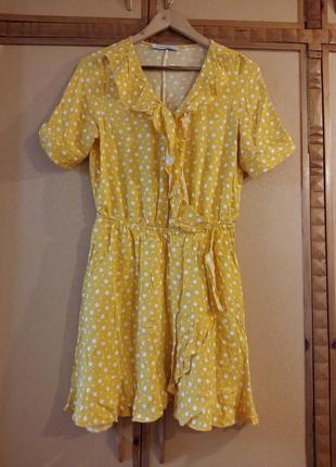 Яскраве літнє плаття LC Waikiki в горошок. Рукавчики з манжетами, іде по талії резинка, по горловині пришита кнопка (можна перешити і відрегулювати по собі). Спереду красиві жіночні оборочки. Тканина м'яка і приємна до тіла. Не просвещается. Не тягнеться. Склад: 100% віскоза ПОГ: 50 см (перешиття кнопку, можна зробити більше/менше) ПІТ: 36 см + добре тягнеться Довжина: ок. 90 см Довжина рукава: 27 см