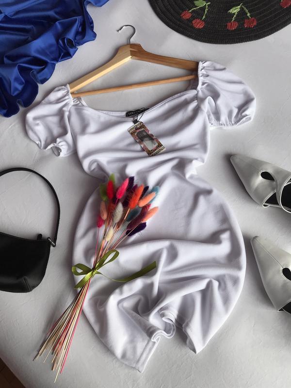 🔥Платье белое Boohoo Размер: 12/40 лучше М состояние: сток, бирка, есть миниатюрные зацепки, в глаза не бросаются Рукав 22, подмышки 38-55, талия 34-46, бедра 41-58, длина 78 95 полиэстер, 5 эластан, тянется чуть светит, мягкое