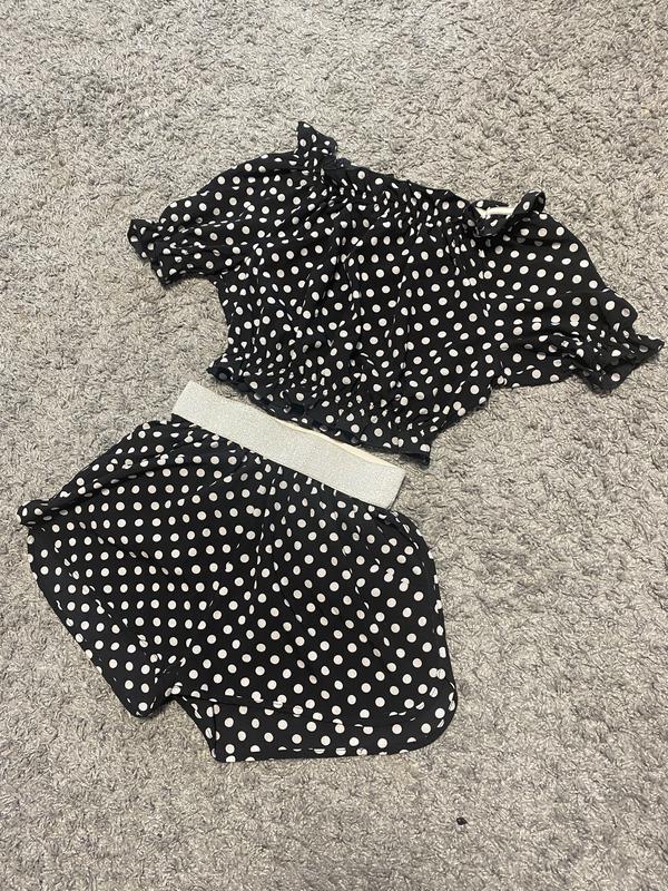 Костюм в горошек с шортами из ткани софт Размер С Шорты высокая талия ,топ спущенные плечи Состояние идеальное Был сшит на заказ