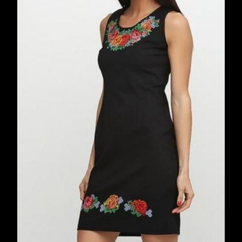 Вишита сукня на натуральній темно-синій тканині. Вишивка кольорова, яскрава, якісна машинна, хрестиком. Довжина 95 см.
