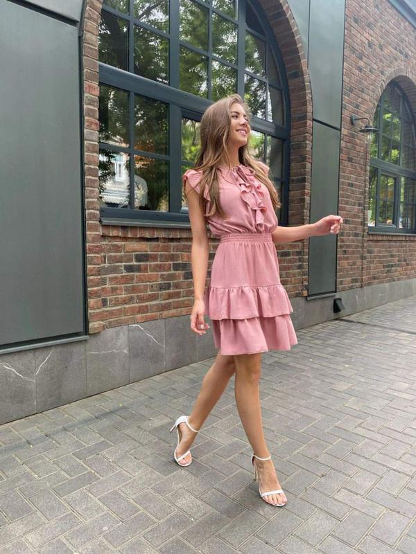 Летнее платье женское. Размер 42-44. Ткань американский креп жатка. Замеры: об.талии 64см, об.груди 100см, длина изделия 90см. Цвет - пудра.