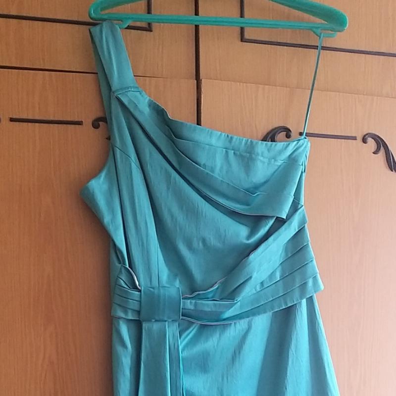 Очень интересное платье, изумительного бирюзового цвета на одно плечо. Пожойдет на размер s-m. Замеры: ПОГ 43 см, ПОТ 35 см, ПОБ 43 см. длина 88 см