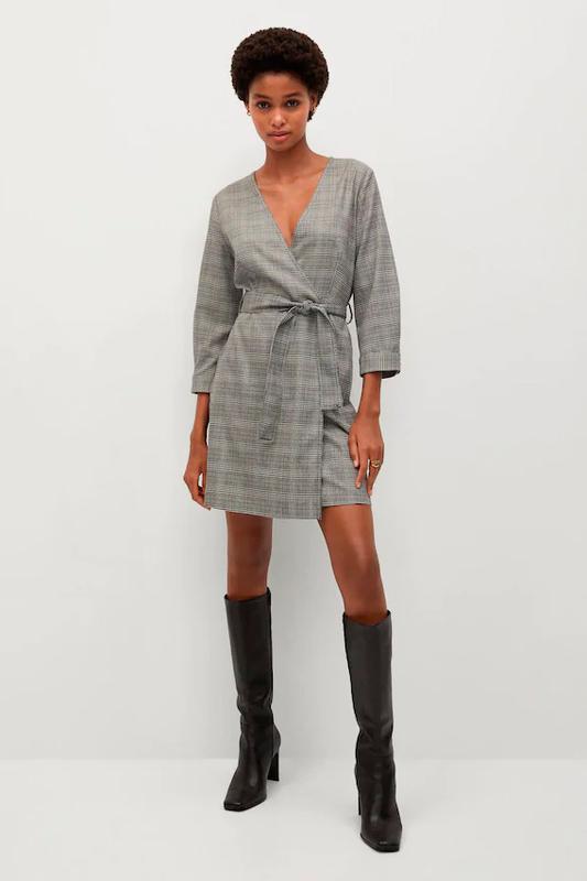 Сіра сукня на запах. Гарна клітка, легке, не просвічує. Розмір М