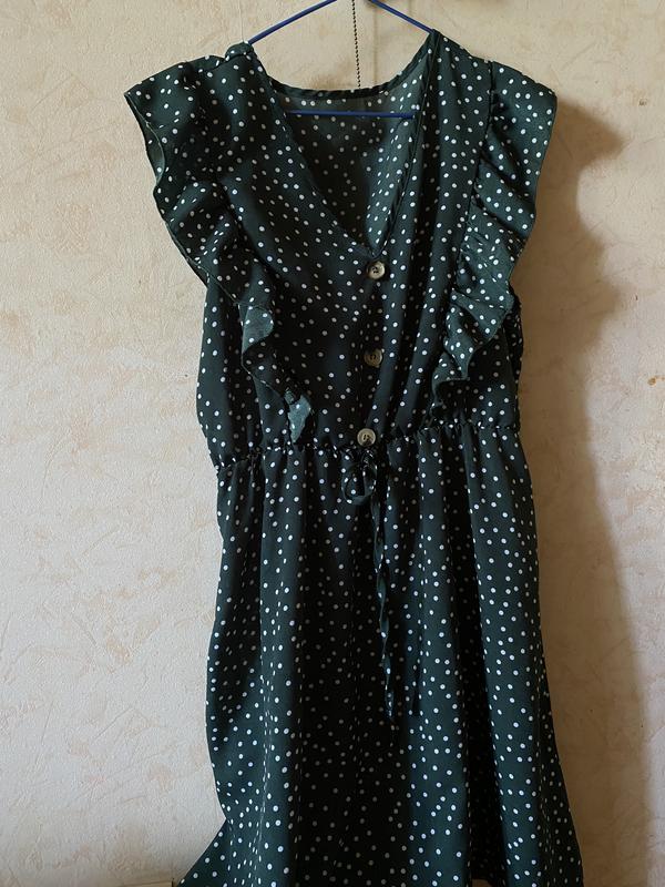 Легка сукня, темного зеленого кольору в горошок Розмір M