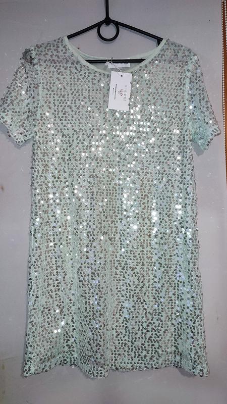 Нова святкова сукня, м'яка ,м'ятного кольору з паєтками .є незначний дефект,розійшовся шов,але без проблем зашити