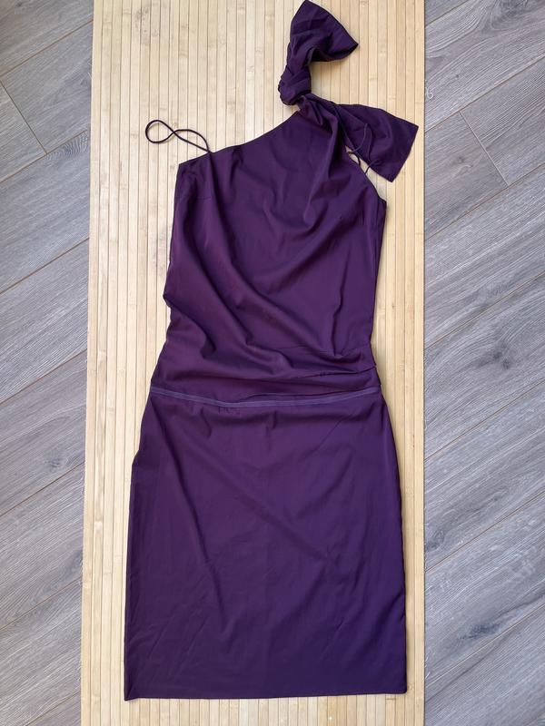 шёлковый сарафан Hugo Boss. С одного бока драпировка. И длинный бант с одной стороны. Можно его оставить в свободном падении а можно заколоть на брошь.