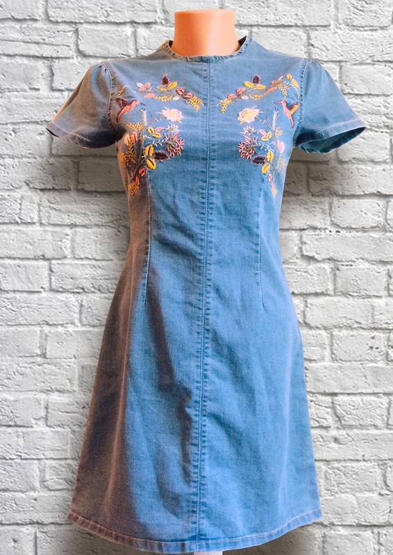 Плаття з цупкої джинсової тканини стрейч . Пошите дуже якісно , без дефектів. . Коротке. вишивка гладдю . Розмір S. Заміри : Пог-38 см.. , ПОТ-34 см. ПОБ 44см. Ширина по низу -95 см. Довжина по спинці -77 см. Відправляю Новою поштою , або Укрпоштою після оплати на карту Приват банку..