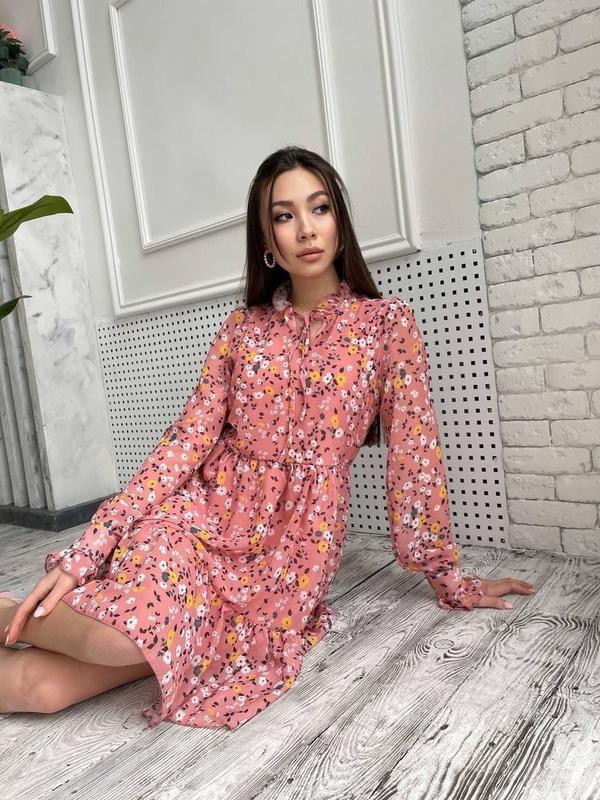 Платье с цветочным принтом❣️ Мод:570 Размер: l,xl(маломерят) Ткань: шифон на подкладке Длина 90см Цена 600 грн🔥