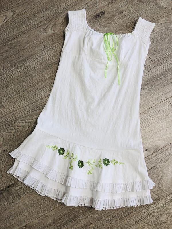 Гарнюще білосніжне плаття. Стан ідеальний. Тканина тягнеться, ззаду на блискавці. Підійде на підлітка. Заміри: довжина від плеча-80 см, грудей-38-39 см, талії-38 см, на стегнах-46 див.