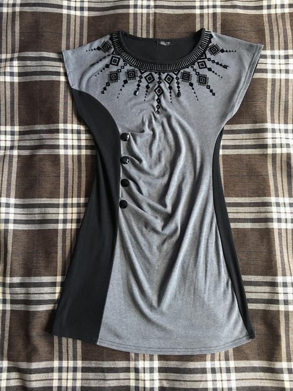 Сукня-туніка, коротенька, всесезонна, можна одягати і влітку і зимою під водолазку і теплі колготи😍 дуже м‘ягенька і приємна тканина, оздоблення якісне, не відклеюється.