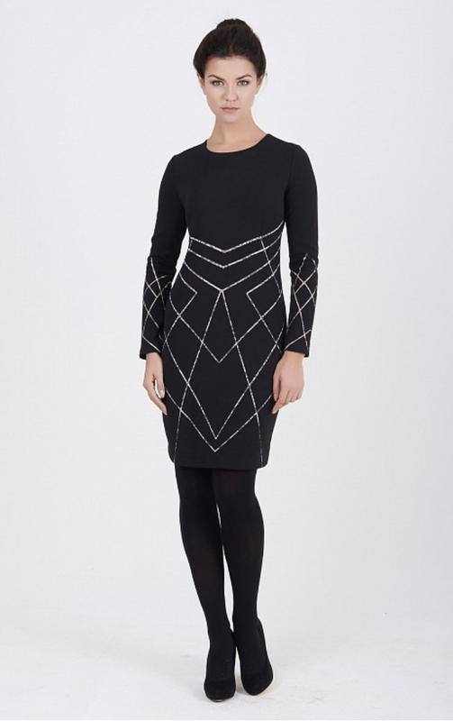 Універсальна сукня, ніжні вставки з мережива виглядають дуже стильно. Матеріал з високим вмістом віскози приємний для тіла, а круглий виріз і довгі рукави підкреслюють стриманість моделі. Жіночні туфлі і клатч складуть з сукнею ідеальний сет.