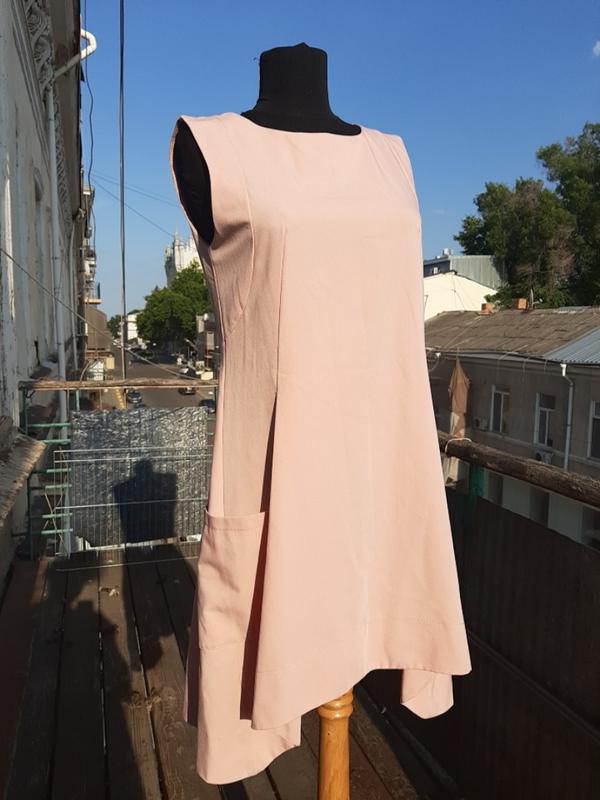 обалденное платье цвет светлый розовый нюд по бокам карманы оригинальный низ стильное костюмная ткань сзади змейка универсальное можно как ежедневное прогулка работа и т.д можно на праздник день рождения/свадьбу/в кафе и т.д. на S-M-L