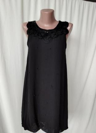 Симпатичное платье украшенное цветами и бусинами. Интересный фасон, ложится отлично. Длина 78 см. ПОГ 43 см.