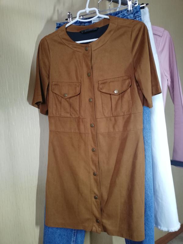 Замшева сукня гірчичного кольору. Дуже красива та приємна на дотик. Є підкладка. На кнопках. По бірці м, але в ідеалі S-невеличка М.