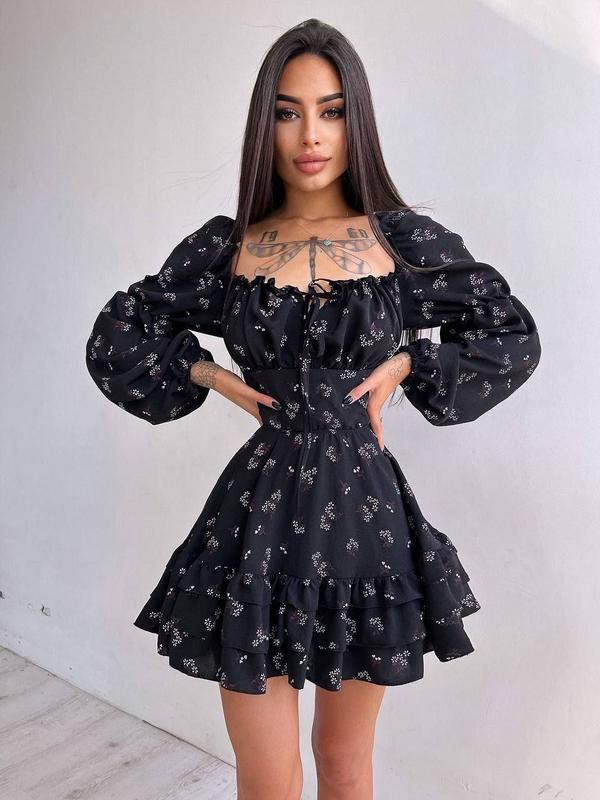 👆Квіткова сукня з воланами та шнуровкою по спинці Тканина - американський креп Розміри : S, М Кольори : тілесний, червоний, блакитний, чорний, лазурно сірий. Країна виробник Україна 🇺🇦