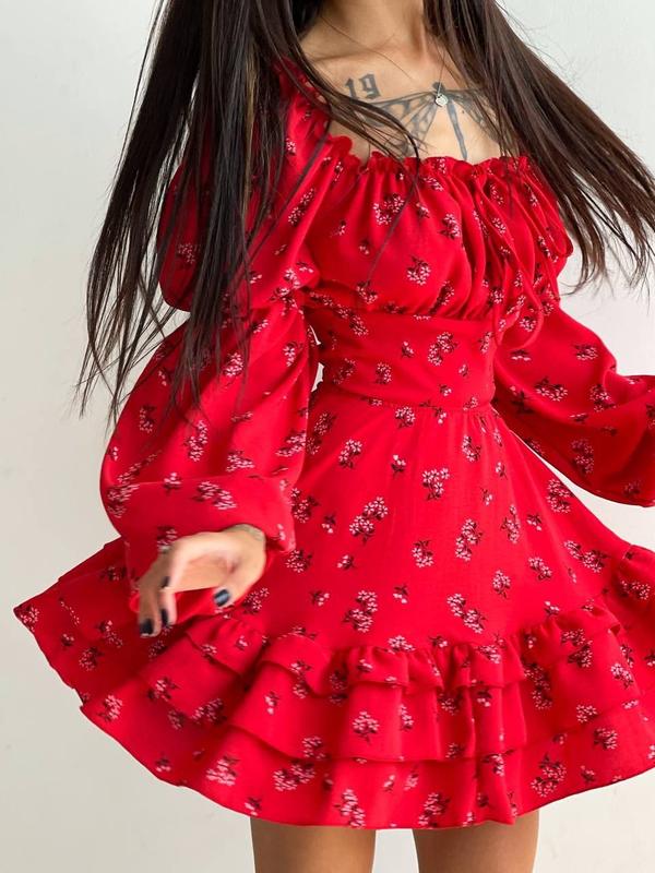 👆Квіткова сукня з воланами та шнуровкою по спинці Тканина - американський креп Розміри : S, М Кольори : тілесний, червоний, блакитний, чорний, лазурно сірий. Країна виробник Україна 🇺🇦