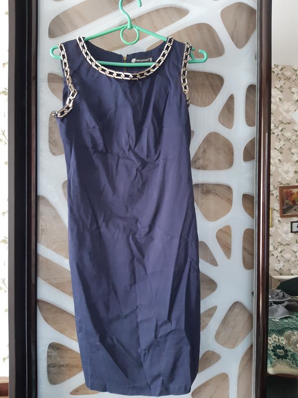 Сукня, гарно сидить по фігурі, на спині є замок, оздоблена ланцюжковими прикрасами