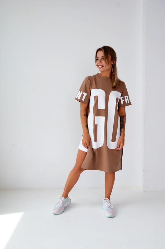 Туника с разрезами Модель (807) 💙отличное качество, качественный принт💙 💛фото реал💛 Ткань: двунитка пенье Турция Размеры: 48-52, 54-56 Цвета: мокко 😍Цена - 500грн😍