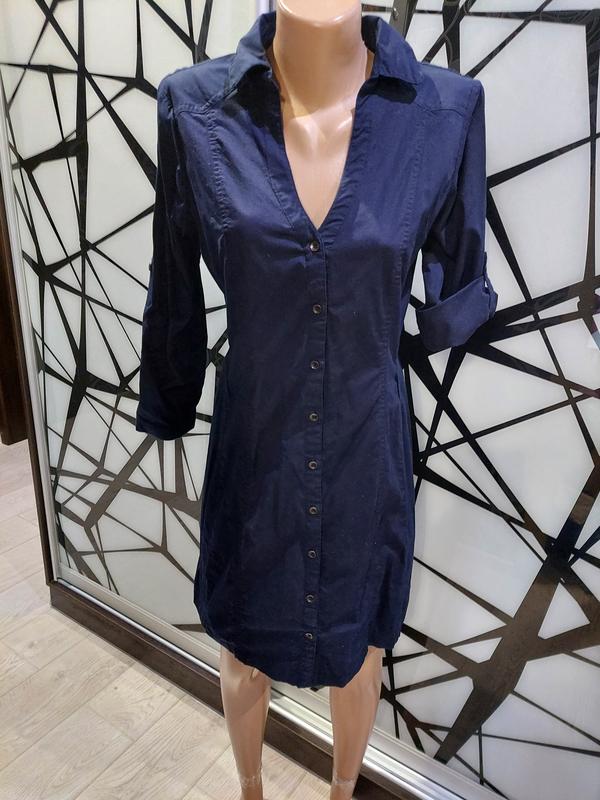 Сукня сорочка Mango темно - синього кольору в ідеалі. Повністю застібається на гудзики, приталений силует. Рукав регулюється в двох положеннях. Розмір на бірці М, але підійде і на 44.