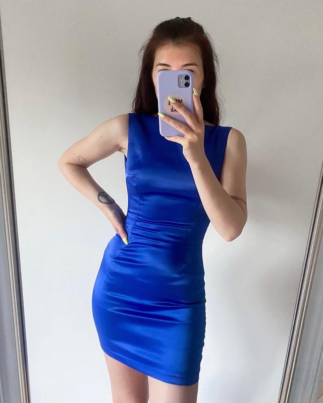 Сукня у неймовірному синьому кольорі 💙 Шикарно сідає по фігурі Майже не тягнеться, підійде на S або маленьку M Є майже непомітні зачіпки (останні фото) Довжина – 75 см ПГ – 36 см ПТ – 30 см ПБ – 43 см