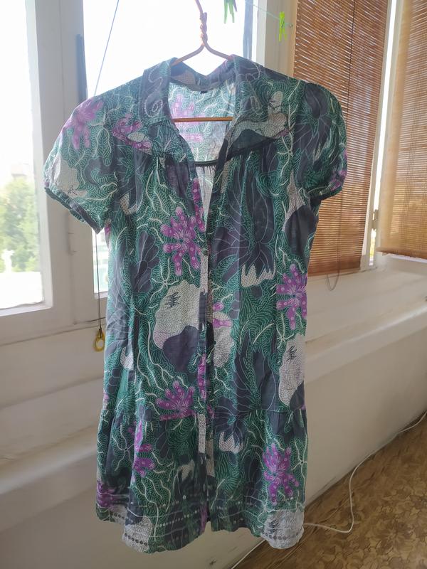 Чудова сукня в ідеальному стані на гудзиках. Має неймовірний колір на візерунок, місцями є вишивка бісером та паєтками.