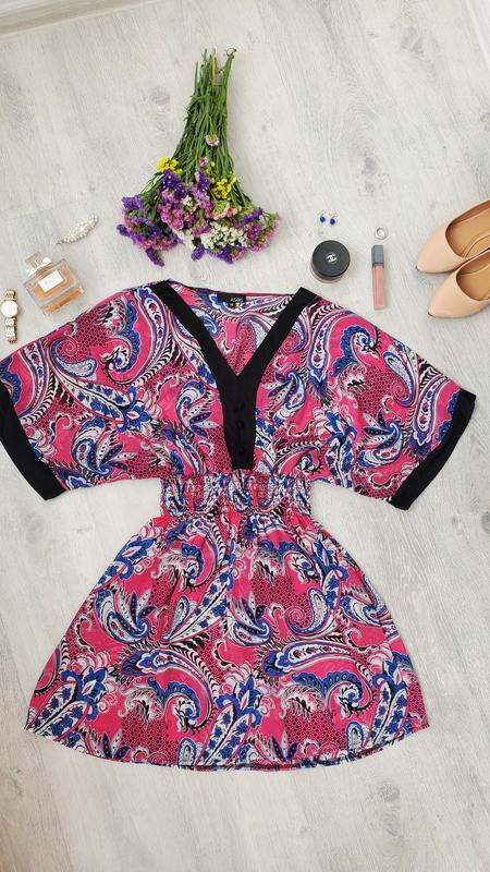 Шивонове плаття, дуже легесеньке, трішки просвічується, але через яскраво виражені малюночки, не сильно помітно, що просвічується. стан ідеальний! Талія на резинці, гарно тягнеться, рукави широкі, а кінці манжет. Розмір M Довжина 85 Талія 28 ширина низ 67 ширина рукава 29, довжина 38