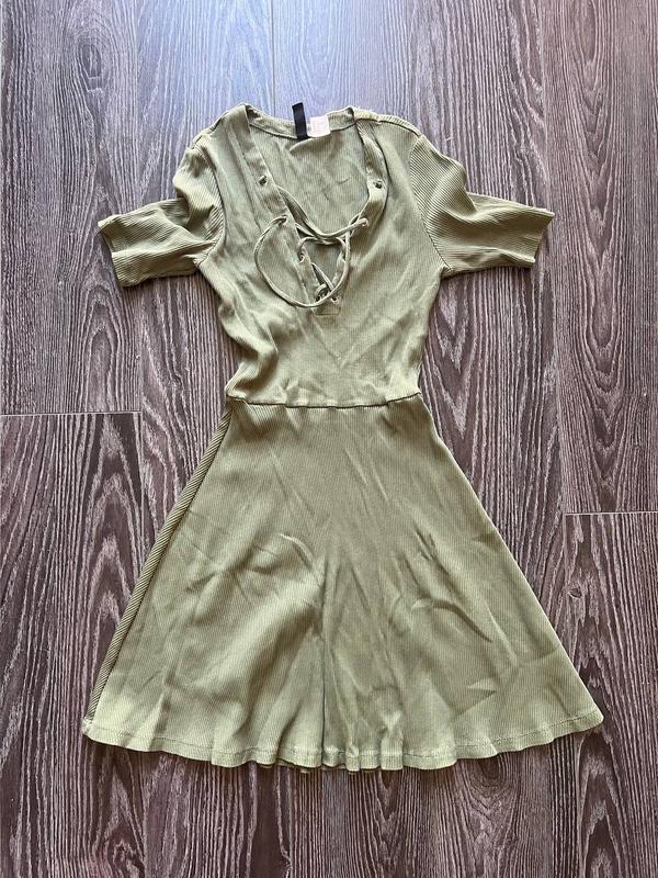Приталенный платье в рубчик цвета хаки Пог 37 см Пот 28 см + хорошо тянется Длина 78 см