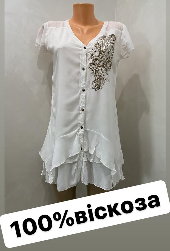 Фото на тілі нема Фото на маникені Фасон вільний по фігурі Колір айворі Довжина 77,5 см) Плечі 38 см) Рукав 13,5 см) Пог 45,5 см) Пот 45 см) Поб 48 си) Знизу 60 см)