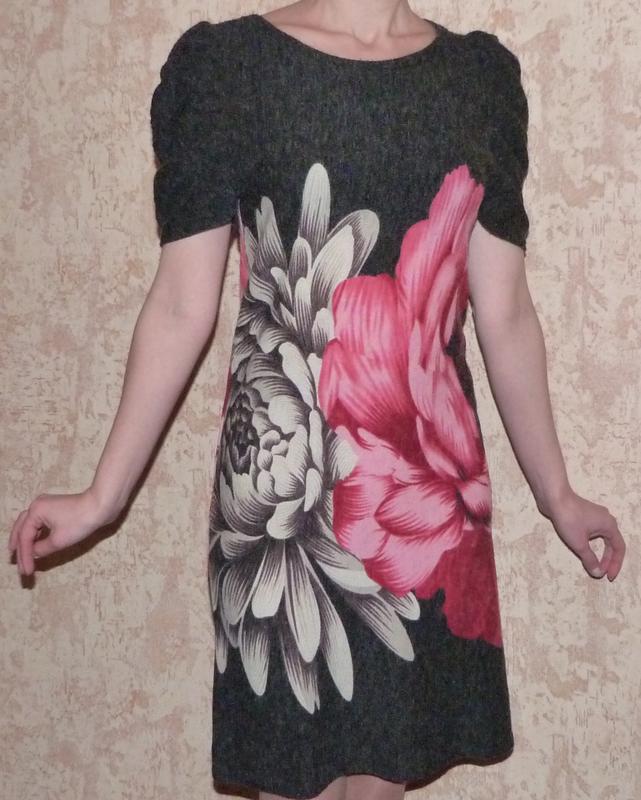 Очень красивое платье, в реале спокойный серый цвет, цветы бордово-розовые с бело-серым. Можно носить осенью или зимой на водолазочку. Красивый рукав складочками. Платье идёт в обтяжку по фигуре, внизу чуть свободновато. Бирку с составом срезала, но есть шерсть с синтетикой. Ткань слегка тянется, подойдёт на параметры 83-87/66-70/88-93. Состояние на 4, есть маленькие катышки, которые легко убираются, но учитывая структуру нити, появятся вновь и, что в носке не очень заметно, но считаю нужным это указать, левая сторона платья чуть длиннее правой. На бёдра больше 90 см. это будет вообще не заметно. Замеры: длина 90 см. плечи 33 см. плечо 6 см. подмышки 42 см. талия 38 см. бёдра 41 см. Дополнительные фото и замеры - по запросу, показываю по скайпу. Покупку совершайте обдумано, товар не секонд, возврат по договорённости. Смотрите остальные мои объявления, экономьте на доставке.
