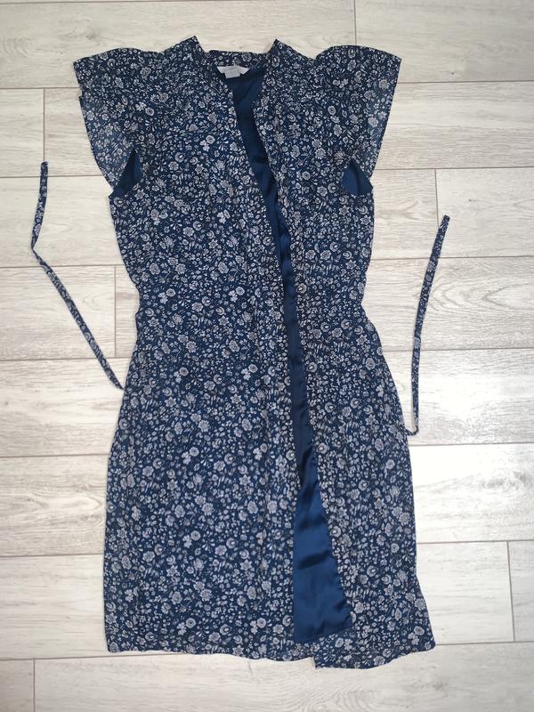 Темно- синя легка сукня на ґудзиках і з поясочком у квітковий принт