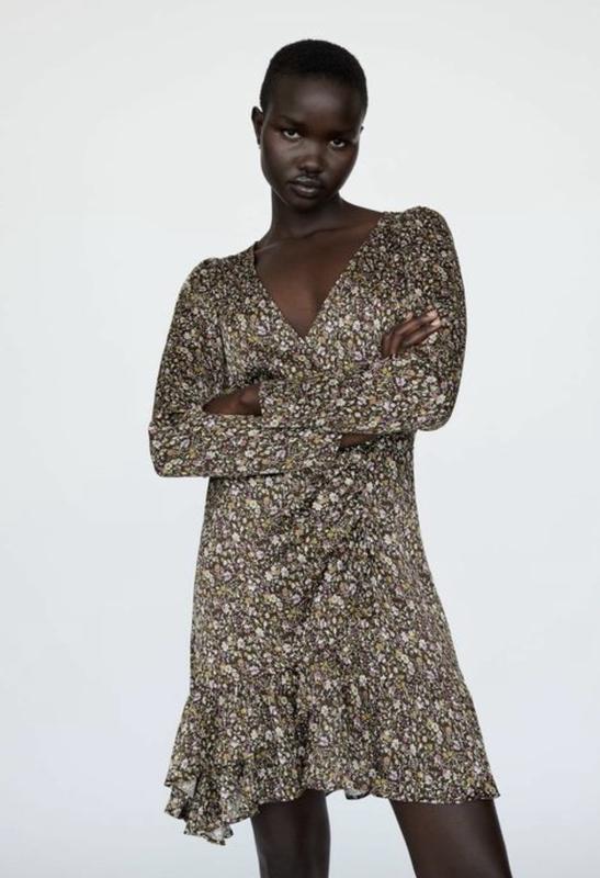 В наличии Новое Платье в цветочный принт ,с v-образным вырезом спереди с запахом и рюшками из новой коллекции Zara размер S Оригинал с бирками