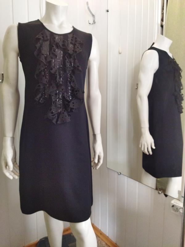 Платье без рукавов из жабо.NIXUIVI Код 516-8 Элитного бренда платье. Черный твидовый сарафан на широких бретельках с круглым-декольте. Модель с черным втачным декором. Модель миди длины с прямым кроем. * Цвет изделия на фотографии может отличаться от фактического товара, что связано с искажением цвета монитора, настройками фотоаппаратуры и другими факторами. Более подробно: Реальная цена -102$ Черное шерстяное платье 516-8 ✅Размер:1 ПОГрудей: 38см(Тагнется до 40) ПОСтегон-46см Длина изделия -106см Черное шерстяное платье 516-8 ✅Размер:3 ПОГрудей: 46см(Тагнет - 48) ПОСтегон-52см Длина изделия -106см