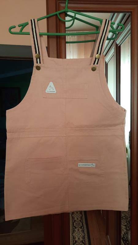 Сарафан персикового кольору на шлейках. Під низ треба футболка. Є маленькі кармани, довжину можна регулювати за допомогою ґудзиків на шлейках. Сарафан вільний, широкий, дуже зручний. З цупкої тканини. Одягали 1 раз, потім виросли) Розмір між м/л. Без дефектів.Пишіть в особисті повідомлення. Відправка Новою Поштою, є накладний платіж.