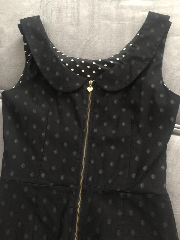 Стильний сарафан в ідеальному стані, чорного кольору в горошок із золотою форнітурою, можна одягати як літом на футболку так зимою на гольф, тканина тягнеться