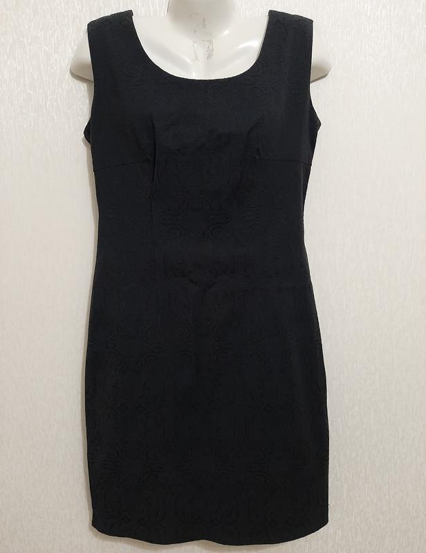 Чёрный классический сарафан,под лонгслив...пиджак или блузу.Ткань плотная, тянется.садится по фигурке.по ткани есть узор.Сзади на потайной молнии. Размер:М/L(44/46) Длина-98 Пог-46 Пот-42 Поб-50 Плечи-40 Шлица сзади внизу-19