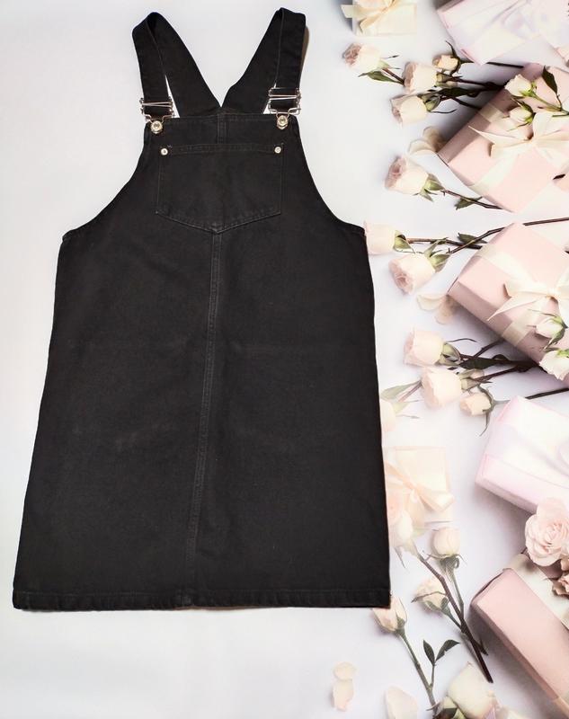 Джинсовий сарафан чорний з накладними кишенями Напівобхват грудей 42,5 см Напівобхват стегон 45 см Довжина від верхньої частини грудей 67 см