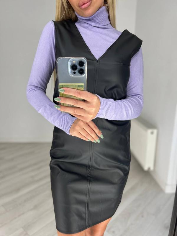 Новий, але вже улюблений елемент жіночого гардеробу - сарафан з еко шкіри Він вважається базовою річчю, яку можна комбінувати з різними речами та створювати різноманітні образи Розміри сарафану 42-44,46-48,50-52 Ціна сарафану: 440грн Під замовлення відшиємо 52-54,54-56 розміри + 100 грн