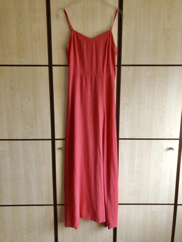 Длинный сарафан из вискозы. Длина без бретелей 133-137 см плюс регулируемые бретели. По груди и по талии 40 см, за счёт резинки сзади сядет на грудь до 93 см. По бедрам свободно - 60-70 см. Ширина юбки по низу 110.