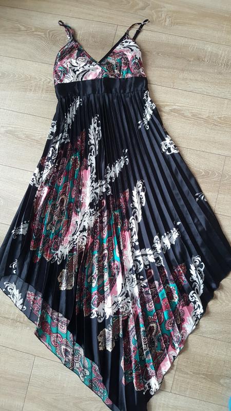Легкий и приятный. Длина на фото без бретелей, которые регулируются. На спине резинка. Имеется 2 затяжки (на фото и на юбке, но там почти не видно).